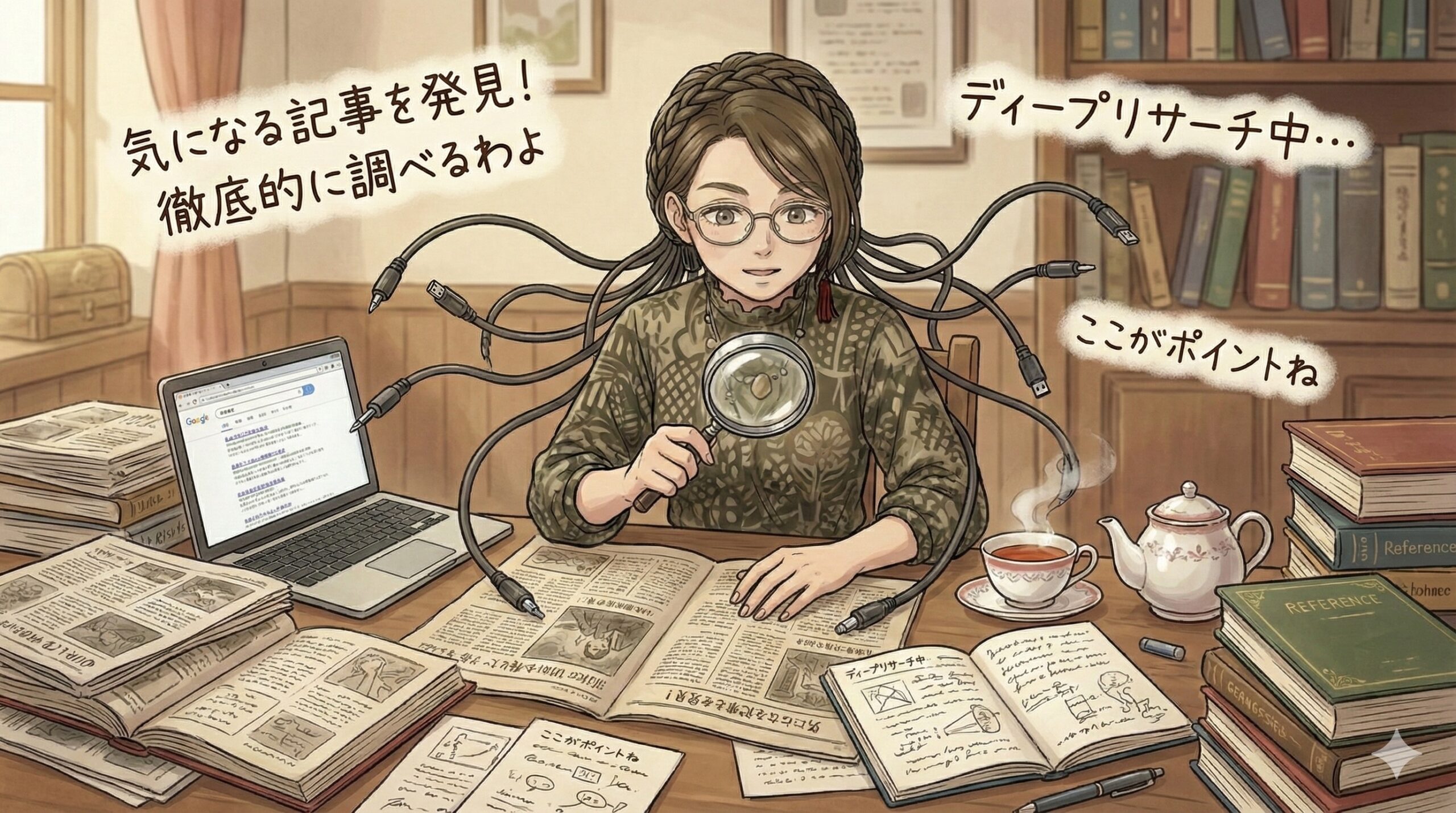 好奇心にディープダイブ。友だちと話しているときに、「この間、ディープリサーチしたんだけどね〜」という話題がよくでるようになり、音声概要を一緒に聞いたり、Googleドキュメントにして送ったりする機会が増えてきたので、調べて面白かった結果を公開しておくことにしました。